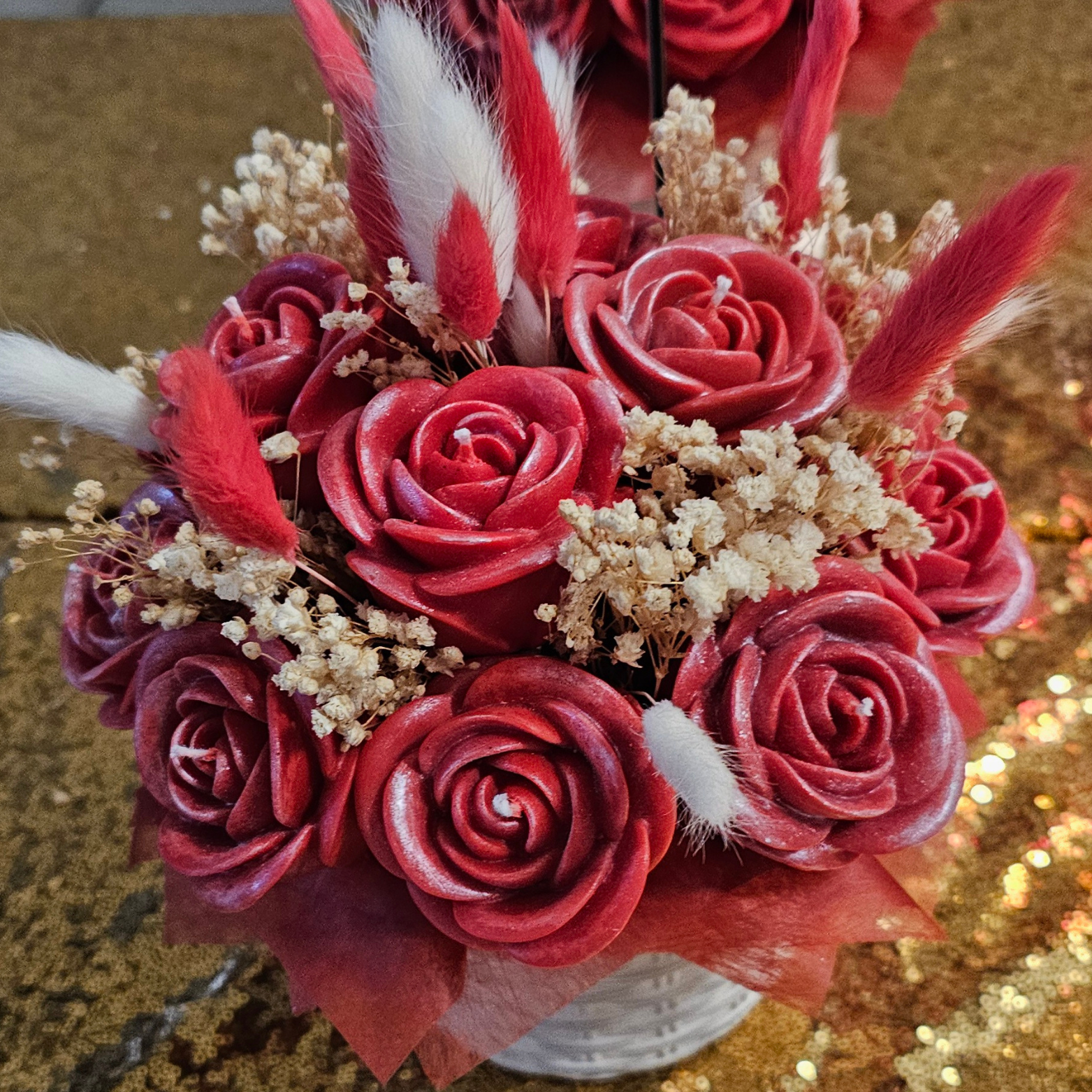 Nuestros ramos de rosas en cera aromática artesanal, de tamaño mediano, han sido creados como el regalo perfecto para parejas muy enamoradas.Un detalle que atrae la atención al instante, enamora a primera vista y deja una huella emocional inolvidable.Cada ramo combina la belleza eterna de las rosas con aromas envolventes, convirtiéndose en una alternativa única a las flores tradicionales.