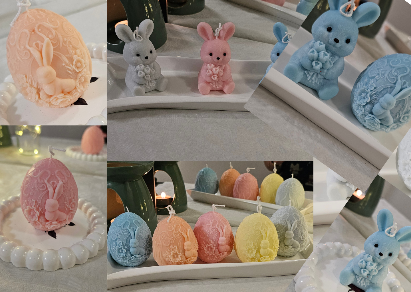 Nuestros Conejitos y Huevos de Pascua en cera aromática artesanal están diseñados para llenar tu hogar de calidez, dulzura y espíritu primaveral.Cada pieza está hecha a mano con amor, cuidando cada detalle para ofrecerte un producto único, decorativo y lleno de encanto.Son el regalo perfecto para Pascua, decoración de mesas, cestas especiales o simplemente para disfrutar de un aroma envolvente que transforma cualquier espacio.